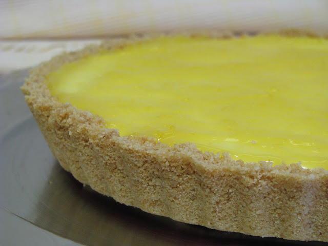 Coloque o batido na tarteira já forrada com a bolacha. Alise e leve ao frigorífico para endurecer. Mais tarde espalhe delicadamente mais 3 colheres de curd até cobrir toda a superfície da tarte.